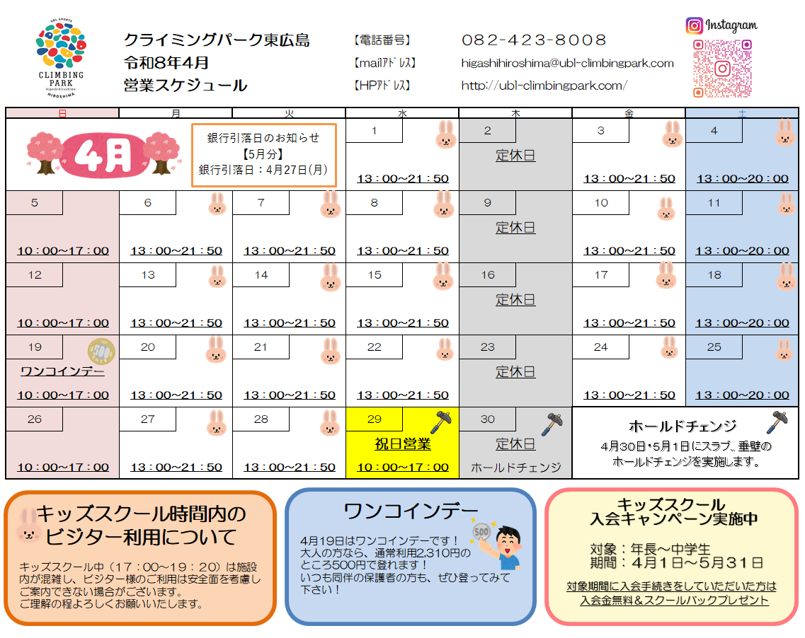 4月営業スケジュールのお知らせです。
