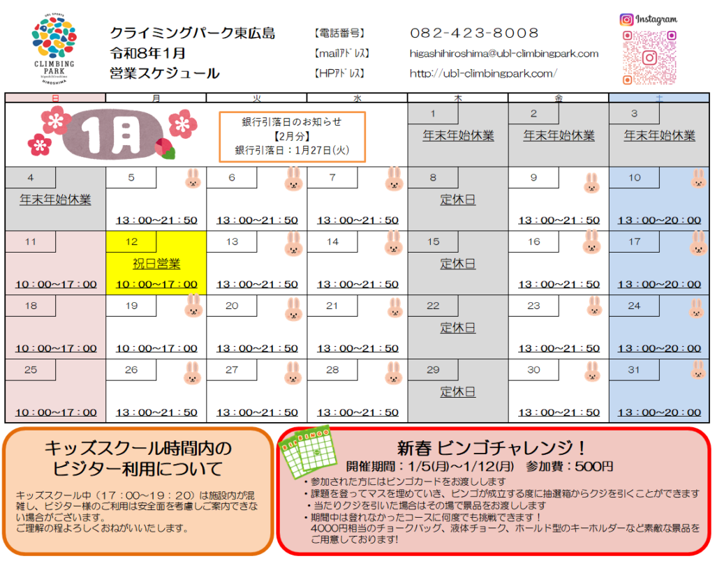 1月5日〜1月12日は「新春ビンゴチャレンジ」を実施しております!