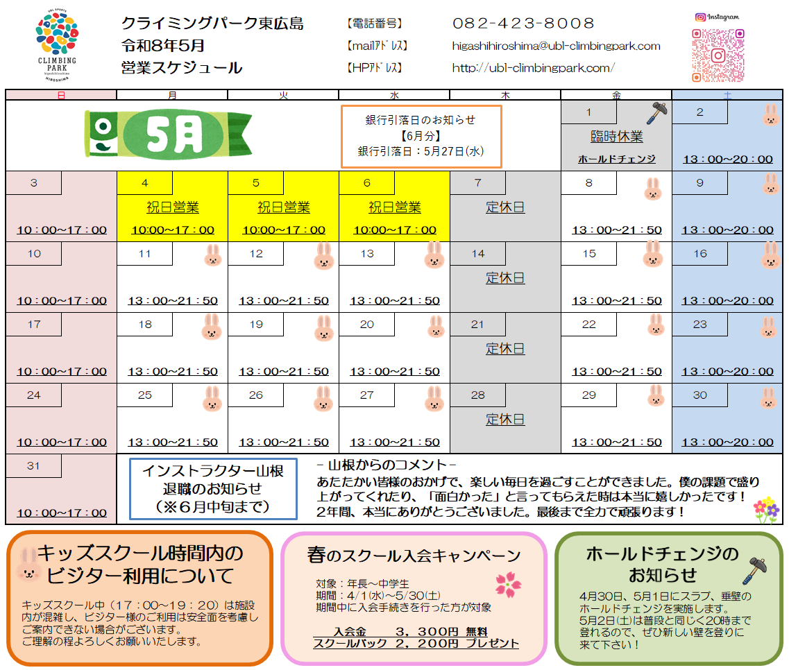 5月営業スケジュールのお知らせです。